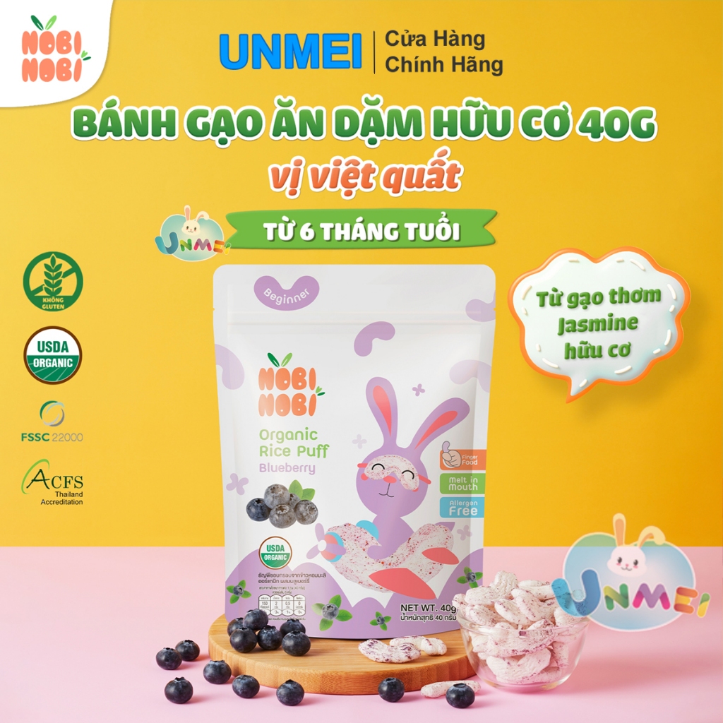 BÁNH GẠO ĂN DẶM HỮU CƠ Nobi Nobi 40g – CHO BÉ TỪ 6 THÁNG TUỔI – Sản phẩm đạt chuẩn hữu cơ USDA