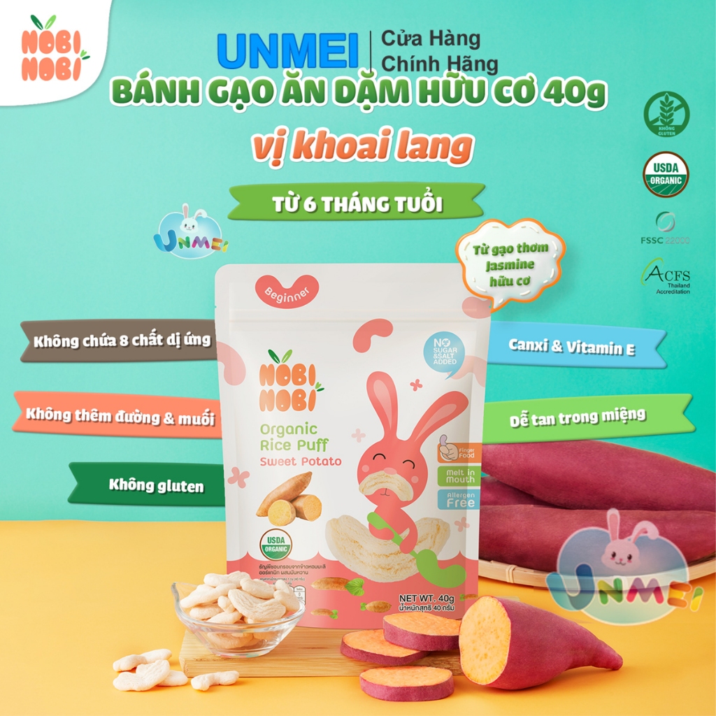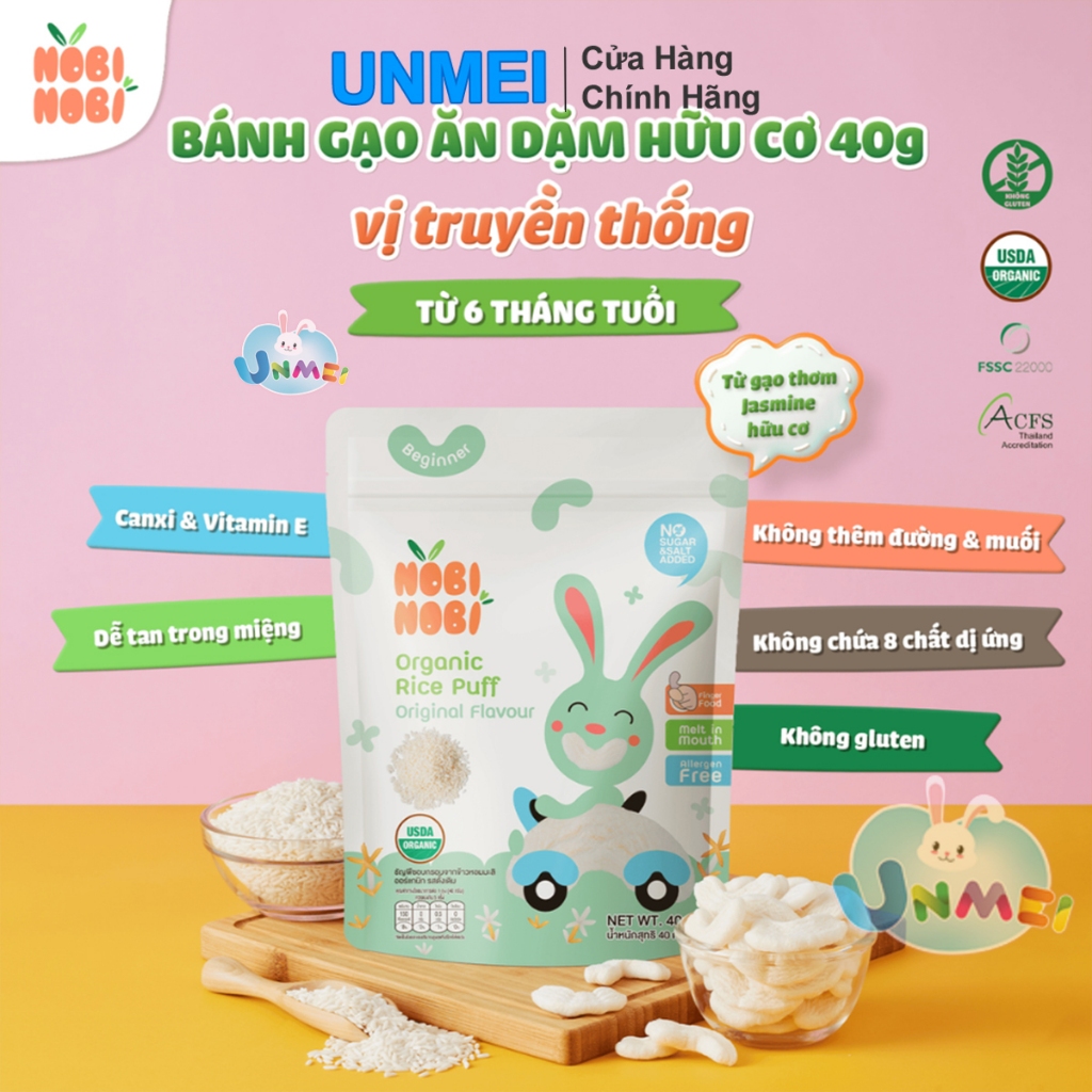BÁNH GẠO ĂN DẶM HỮU CƠ Nobi Nobi 40g - CHO BÉ TỪ 6 THÁNG TUỔI - Sản phẩm đạt chuẩn hữu cơ USDA