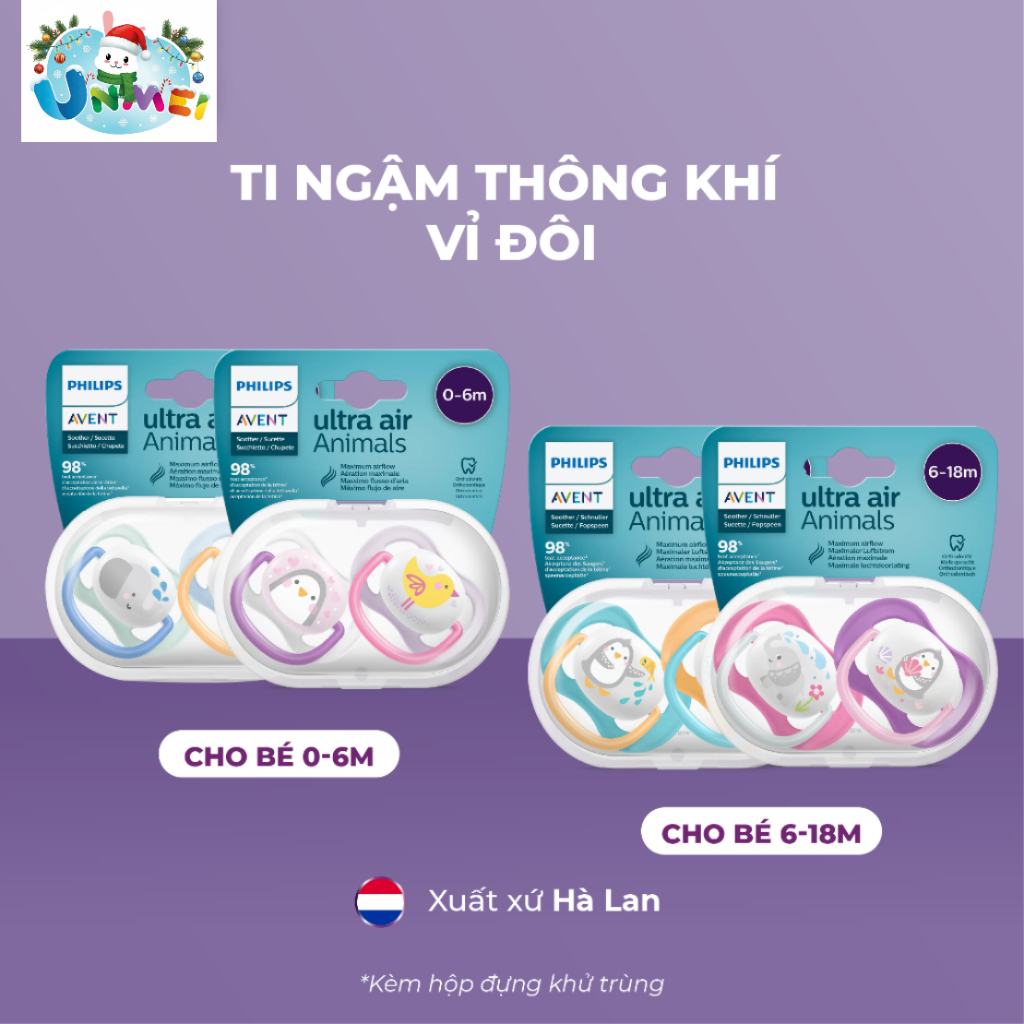Combo 2 vỉ đôi Ti ngậm thông khí Philips Avent cho bé 0-18 tháng tuổi