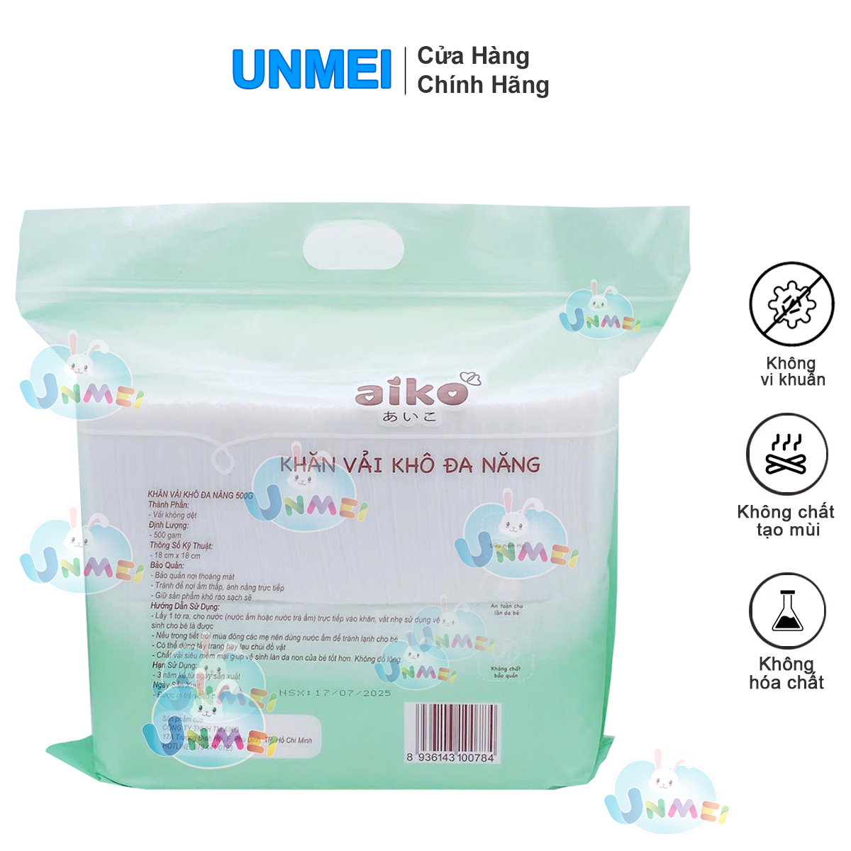 Combo 5 Gói Khăn Khô Đa Năng Aiko 500G/Bịch – An Toàn Cho Da Em Bé