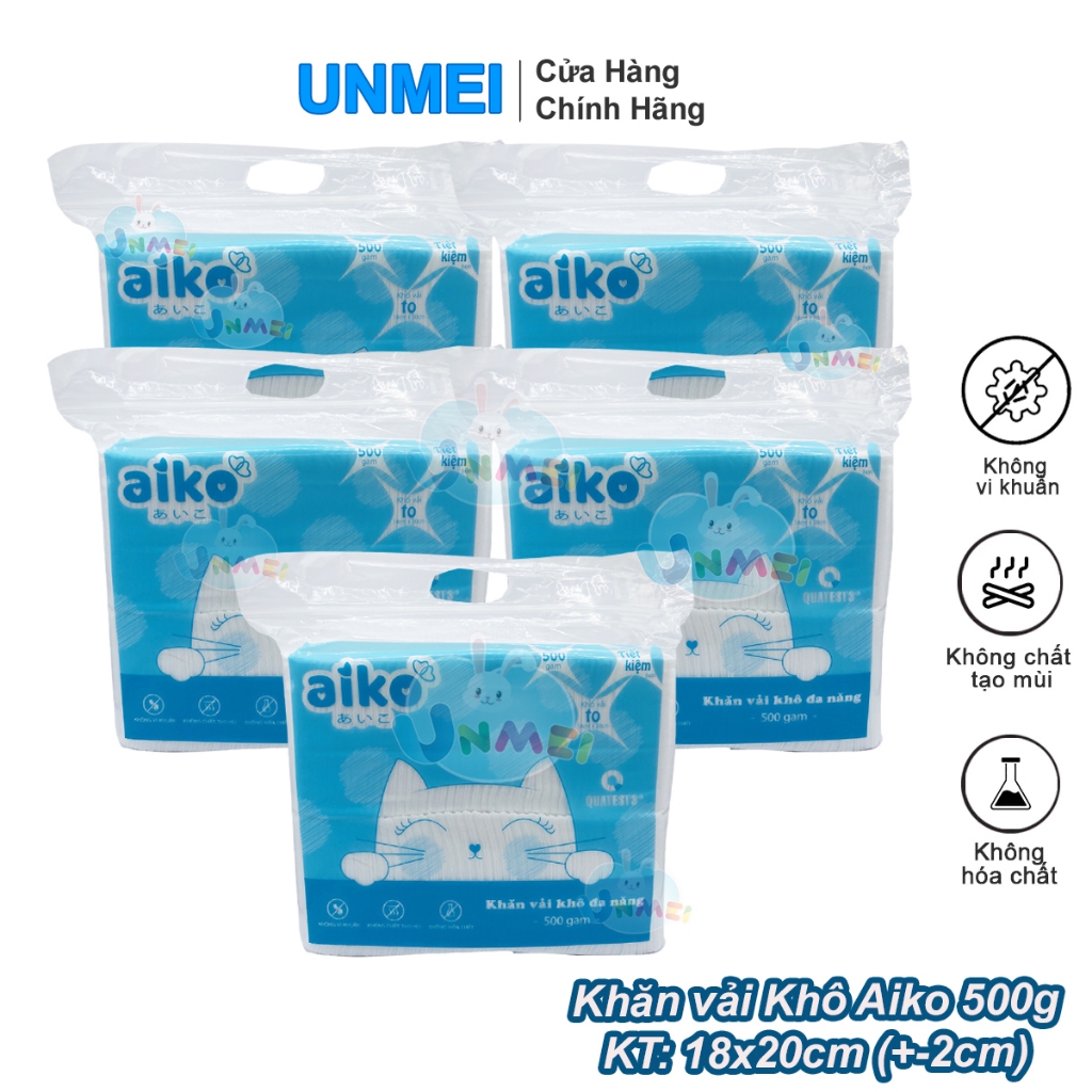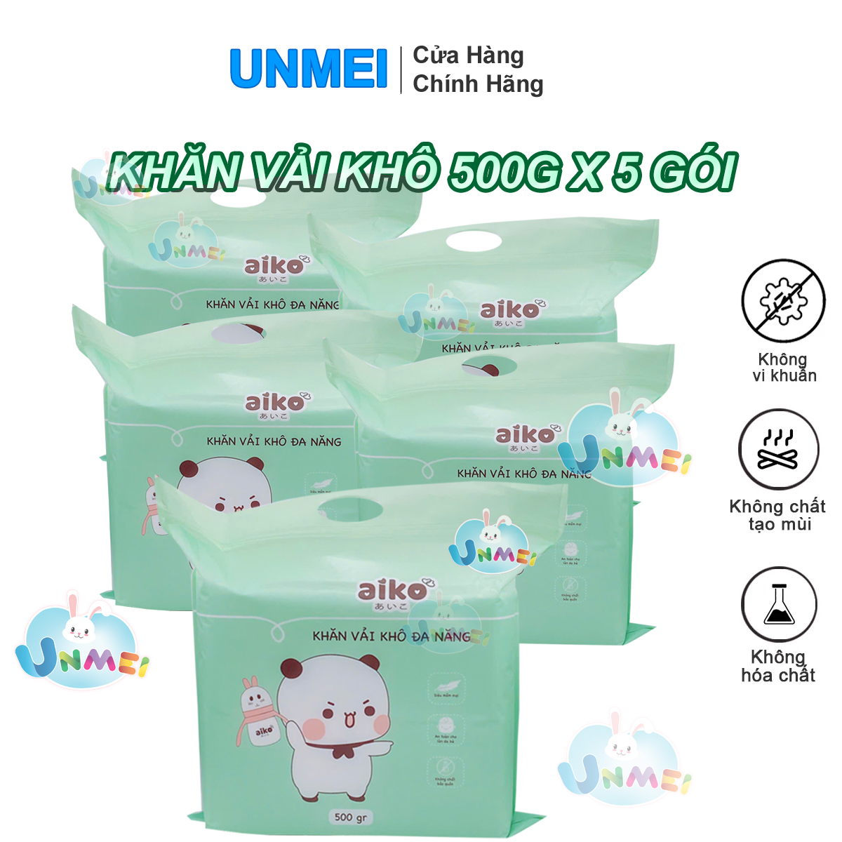 Combo 5 Gói Khăn Khô Đa Năng Aiko 500G/Bịch - An Toàn Cho Da Em Bé