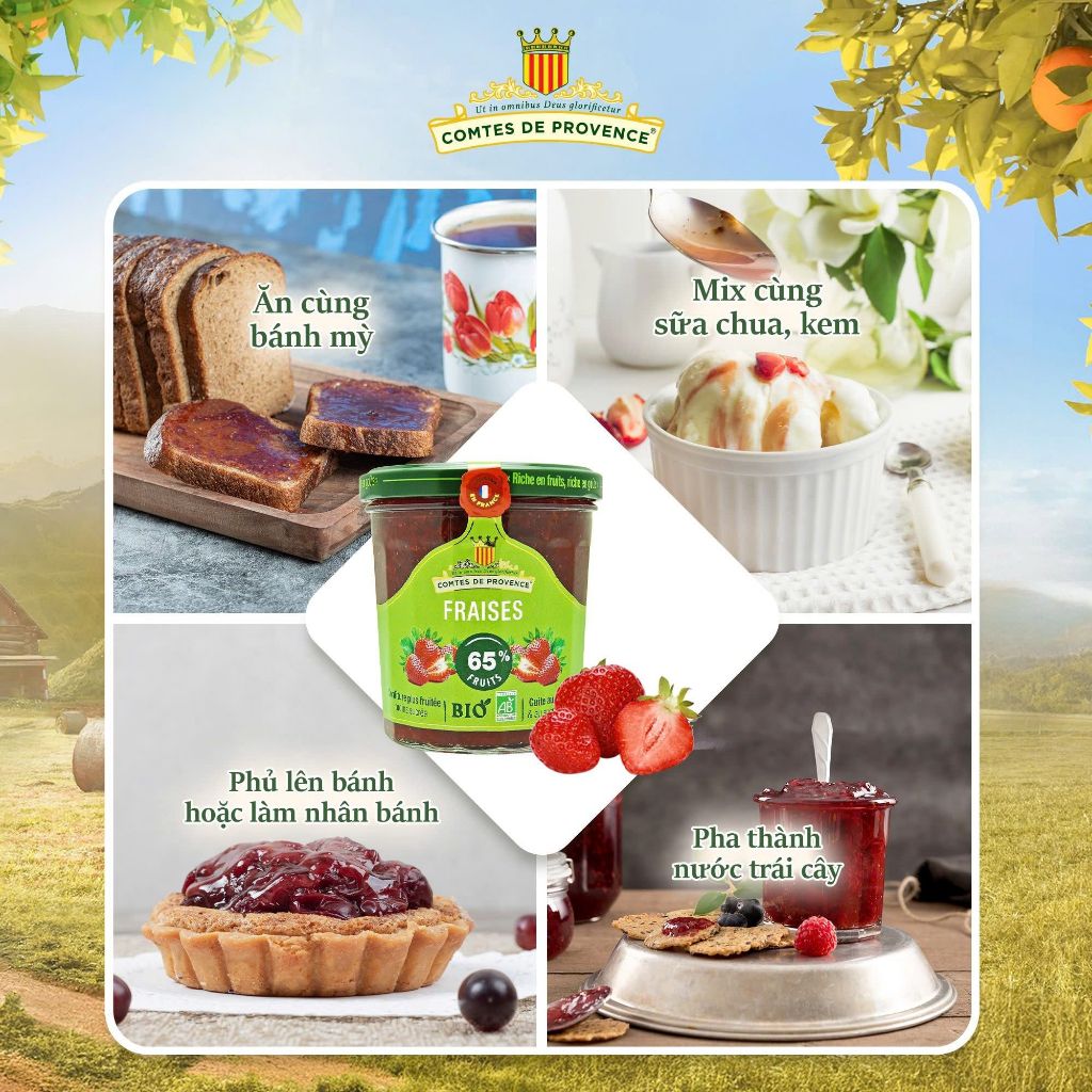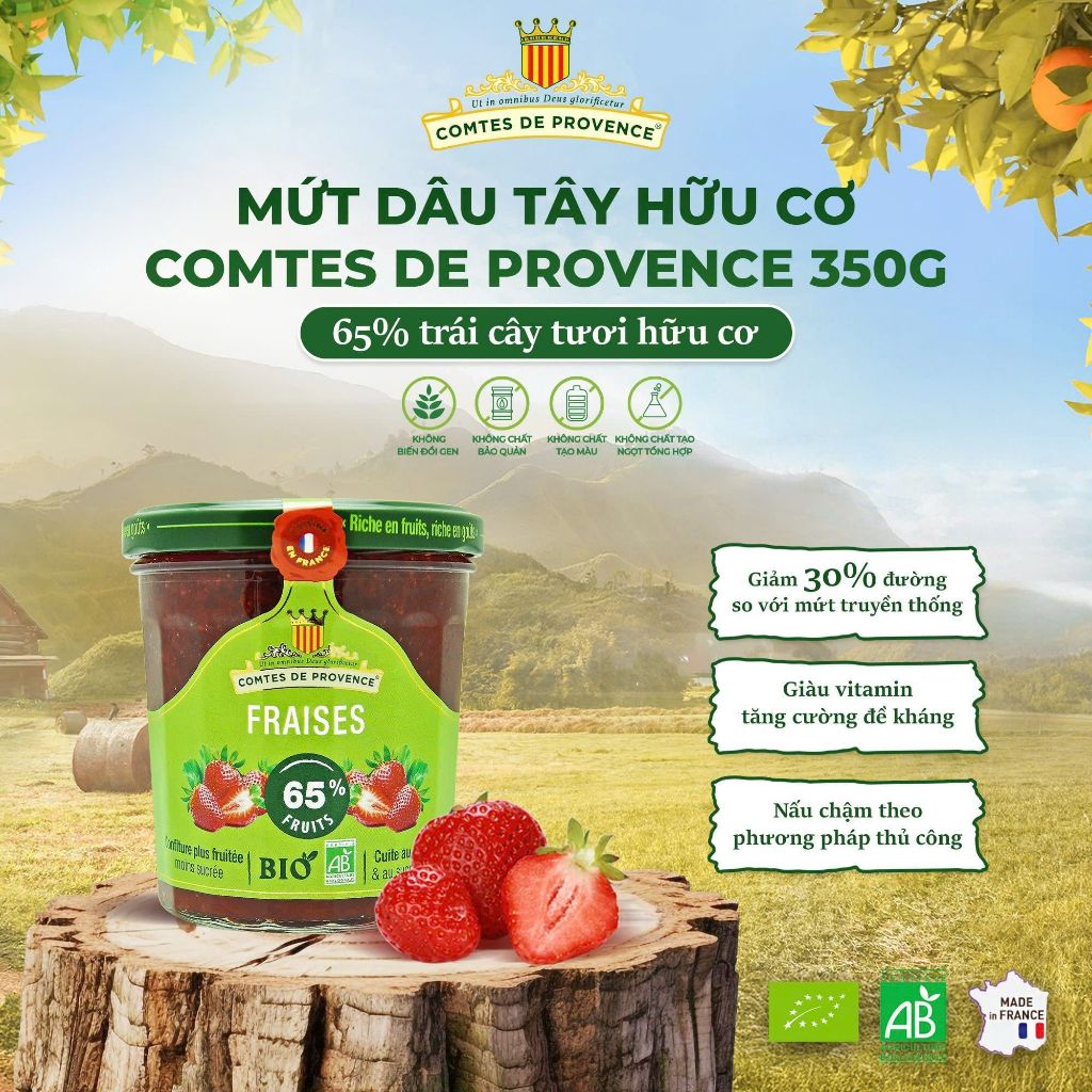 Mứt hữu cơ Comtes de Provence là thương hiệu nổi tiếng từ năm 1986 tại Pháp về chất lượng, vị ngon nhờ phương pháp truyền thống nấu trong nồi, giống như các nghệ nhân thời xưa, đảm bảo giữ nguyên hương vị tươi ngon của trái cây.