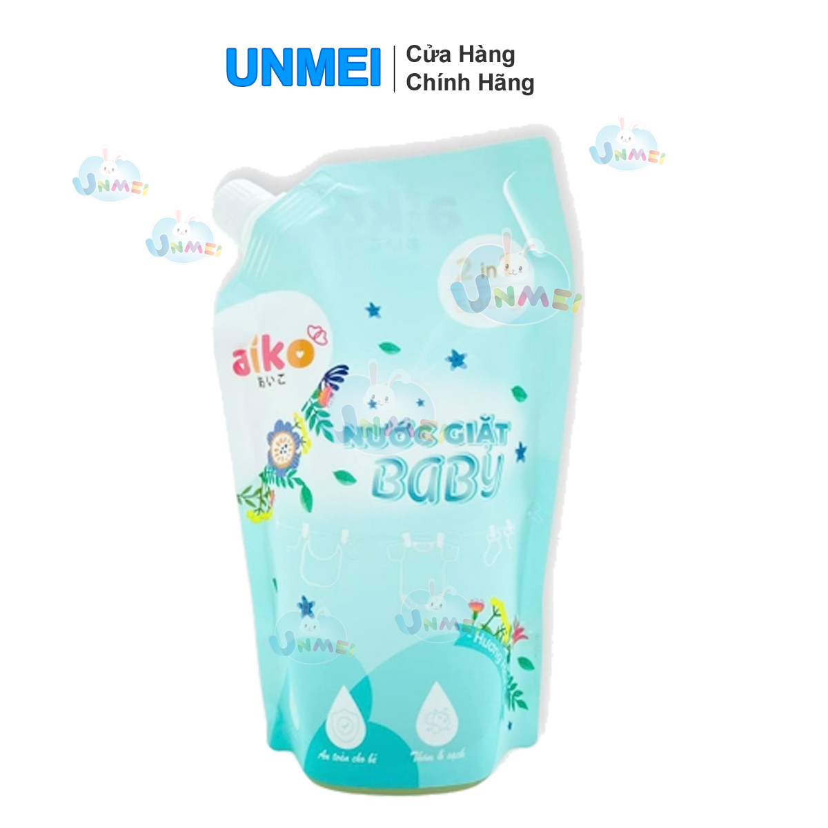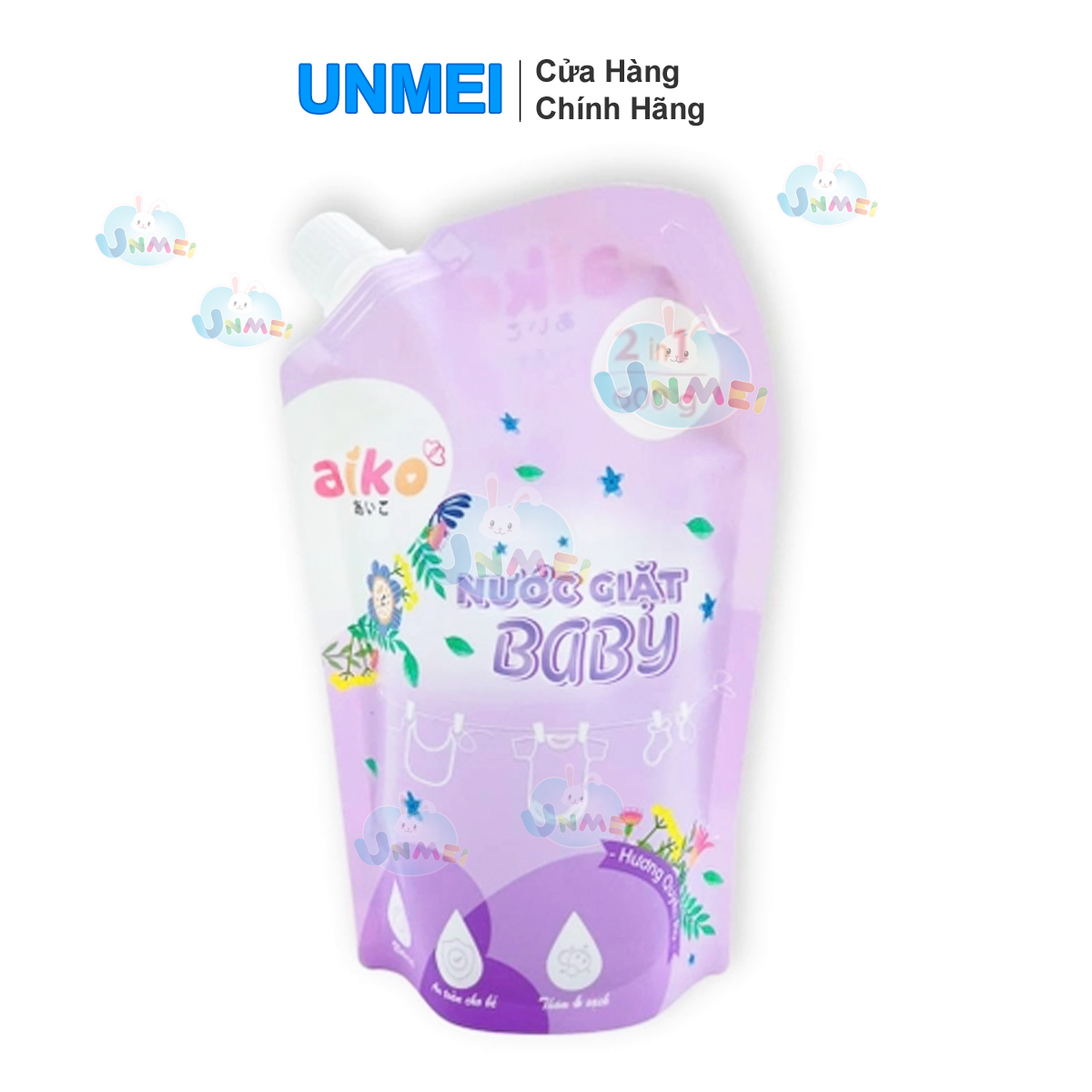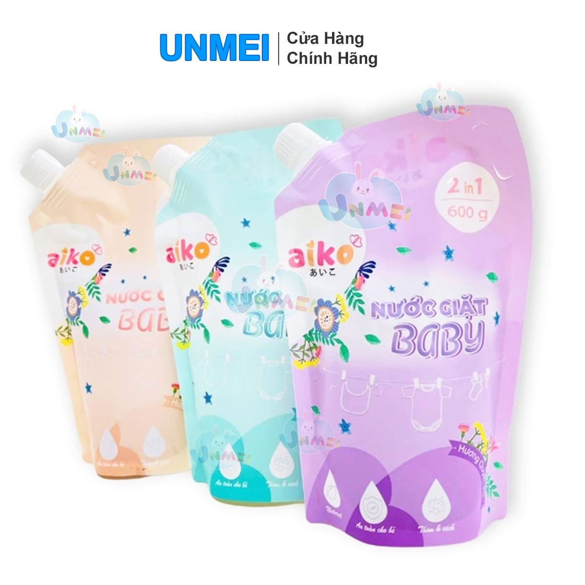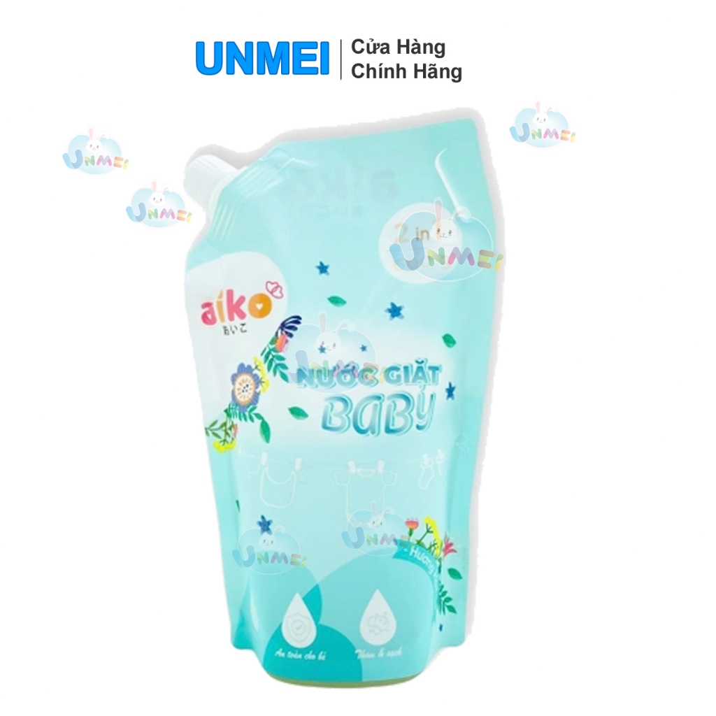 Nước giặt Quần Aiko -TÚI 600g – Xanh/Hồng/Tím, Thơm Lâu, Dịu Nhẹ Và An Toàn với Da Nhạy Cảm Của Bé