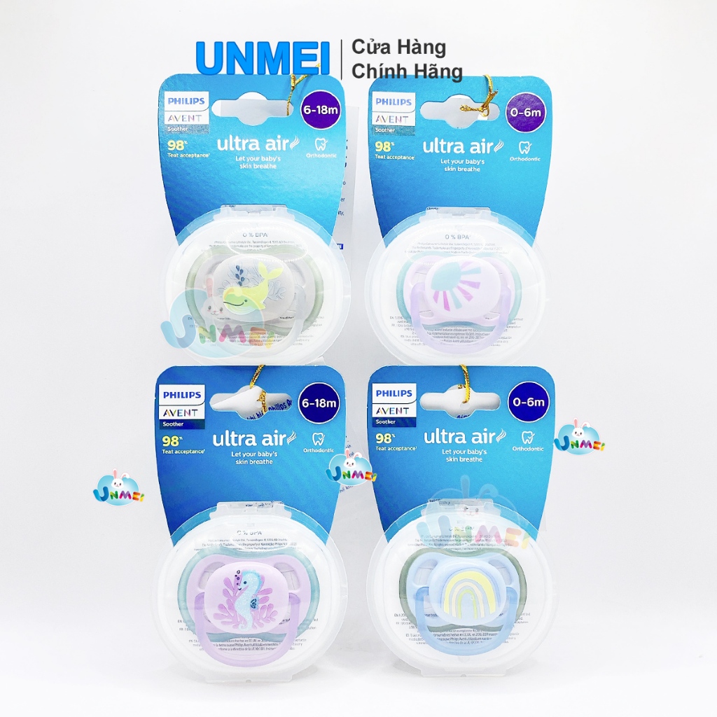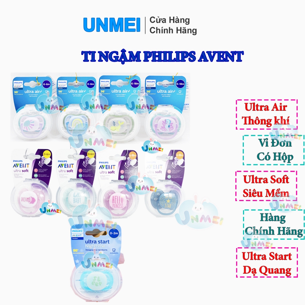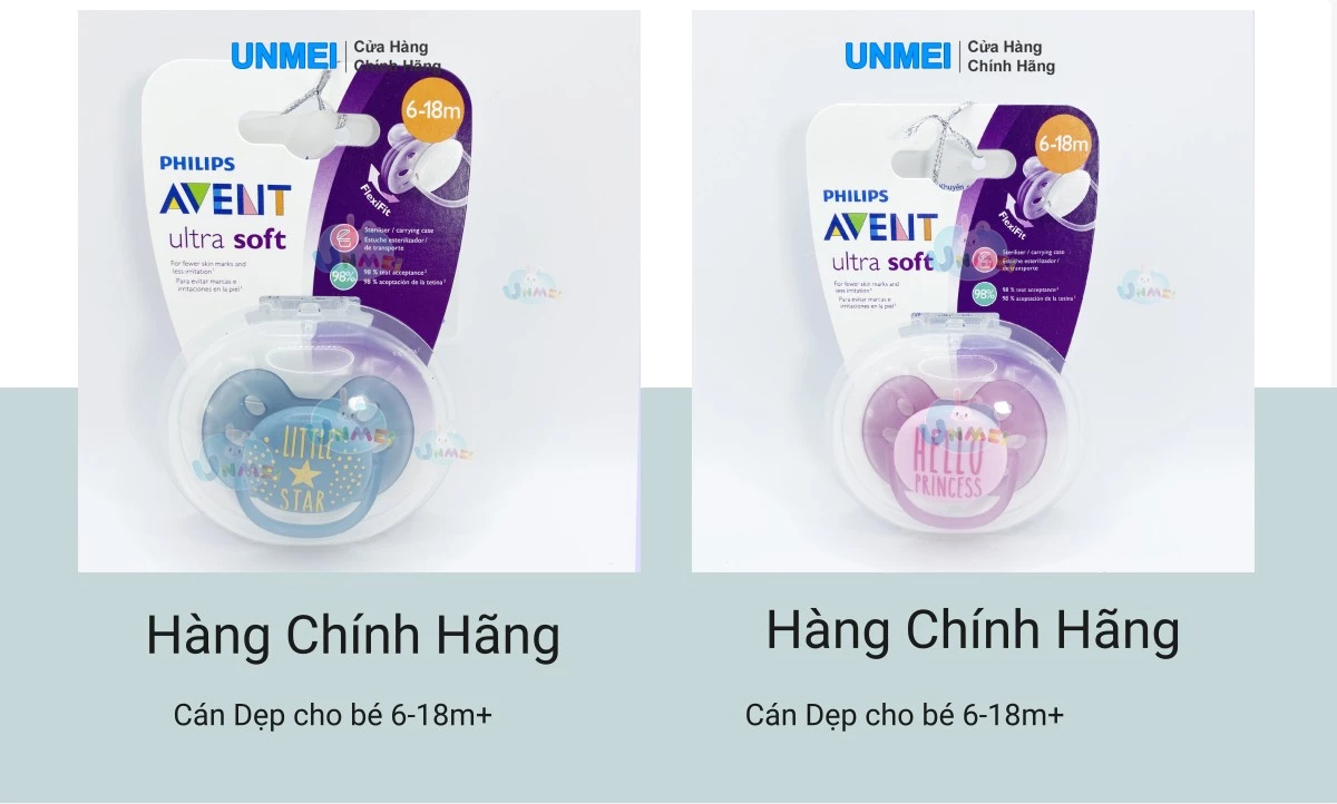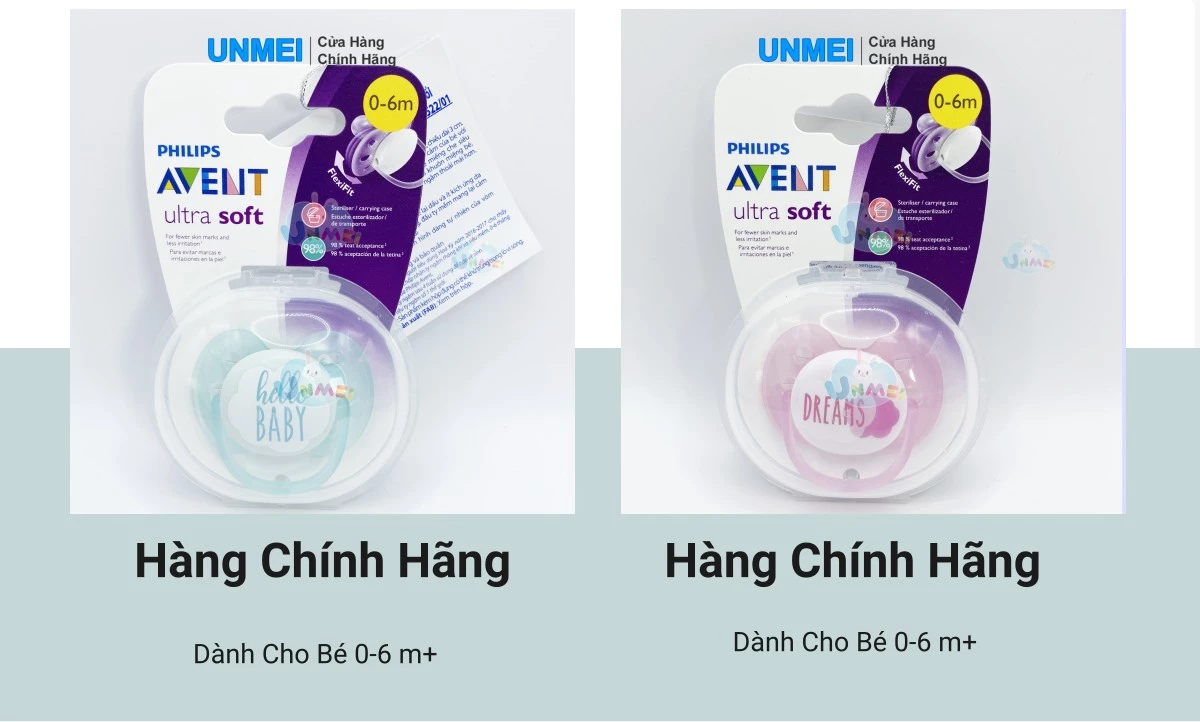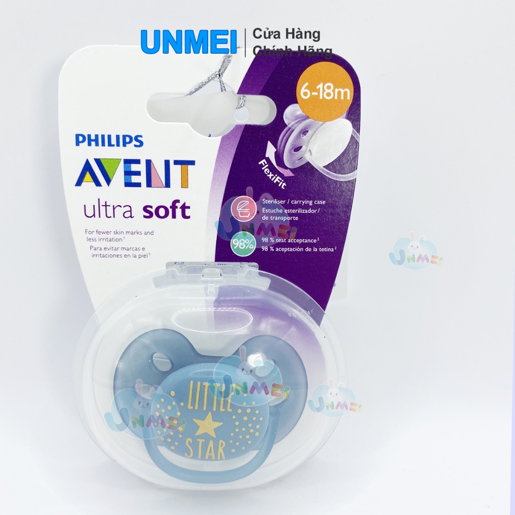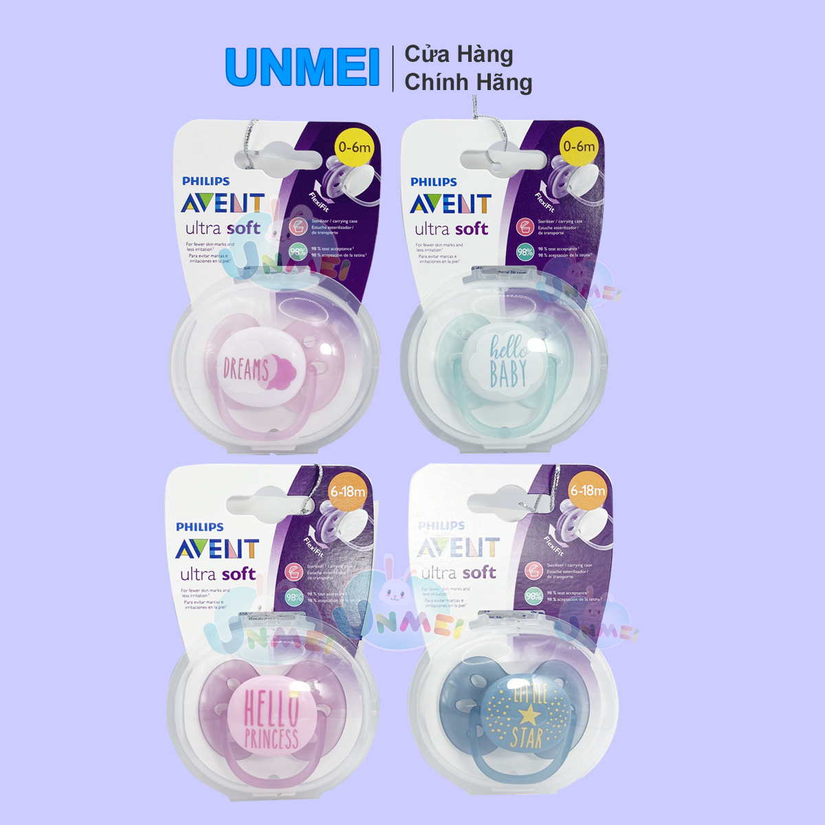 Philips Avent Núm Ti Ngậm Mềm, Ty Ngậm Avent Ultra Soft/Ultra Air/Ultra Star Cán Dẹp Dành Cho Bé  0-6 tháng/6-18 tháng
